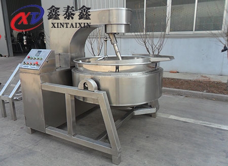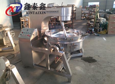 八、攪拌軸花鍵鏈接處,采用硅膠保護(hù)套,防止物料濺到連接處,更避免物料濺到攪拌軸上流回鍋內(nèi),造成物料二次污染;攪拌軸上所有連接,均采用自鎖螺母,防止螺母脫落至鍋內(nèi),造成生產(chǎn)事故;攪拌盤采用定向停車,保證攪拌軸不受應(yīng)力,避免長時(shí)間使用造成應(yīng)力偏軸。